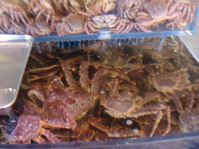 店頭には沢山の蟹やらなんやら。