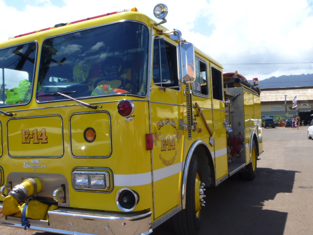 マーケットの前には消防車が。